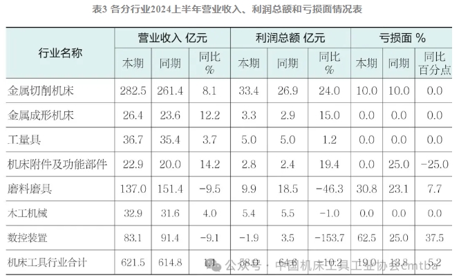 2024上半年,協會重點關注的機床工具行業上市公司整體營業收入保持小幅增長,但利潤總額明顯下降。究其原因,主要是受整體市場需求不足、金剛石線鋸和CVD培育鉆石等產品價格大幅下降,以及個別企業業務調整等因素影響,磨料磨具和數控裝置兩個分行業的利潤總額大幅下降。