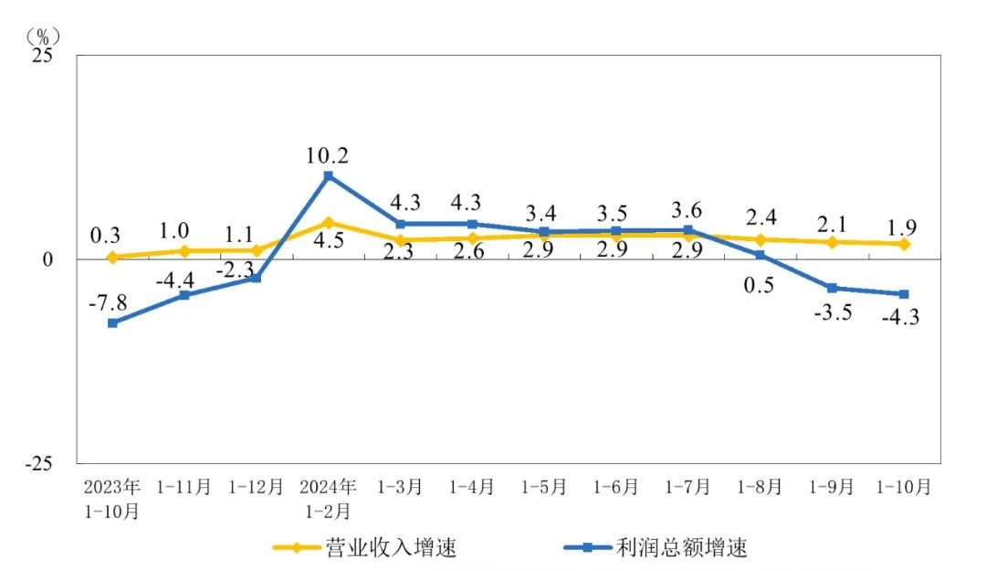 10月份,規(guī)模以上工業(yè)企業(yè)利潤同比下降10.0%。