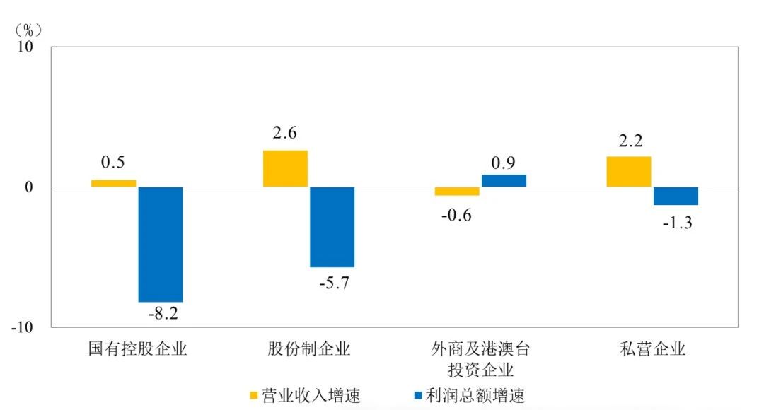 圖3 2024年1-10月份分經(jīng)濟類型營業(yè)收入與利潤總額增速