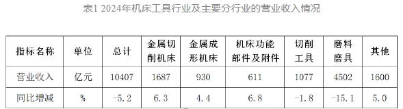 2024年,機(jī)床工具行業(yè)完成營(yíng)業(yè)收入10407億元,同比下降5.2%。