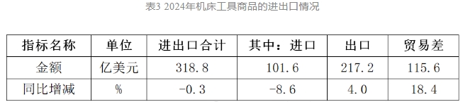 2024年,中國機(jī)床工具行業(yè)進(jìn)出口總體略有下降,其中進(jìn)口繼續(xù)下降,出口持續(xù)增長(zhǎng),貿(mào)易順差擴(kuò)大。