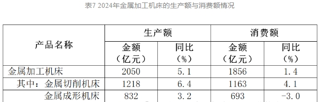 2024年我國金屬加工機(jī)床生產(chǎn)額為2050億元,同比增長(zhǎng)5.1%。消費(fèi)額為1856億元,同比增長(zhǎng)1.4%。