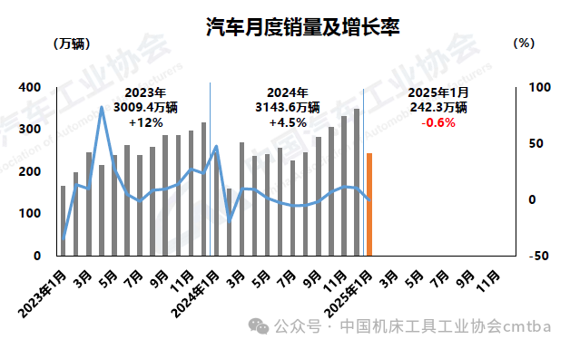 中國汽車工業協會最新數據顯示,2025年1月,汽車產量實現小幅增長,銷量較同期只微降,行業迎來平穩開局。其中,乘用車延續良好表現,產銷同比雙增;商用車市場需求偏低,銷量同比有所下降;新能源汽車表現亮眼。當月,汽車產銷分別完成245萬輛和242.3萬輛,環比分別下降27.2%和30.5%,產量同比增長1.7%、銷量同比下降0.6%。