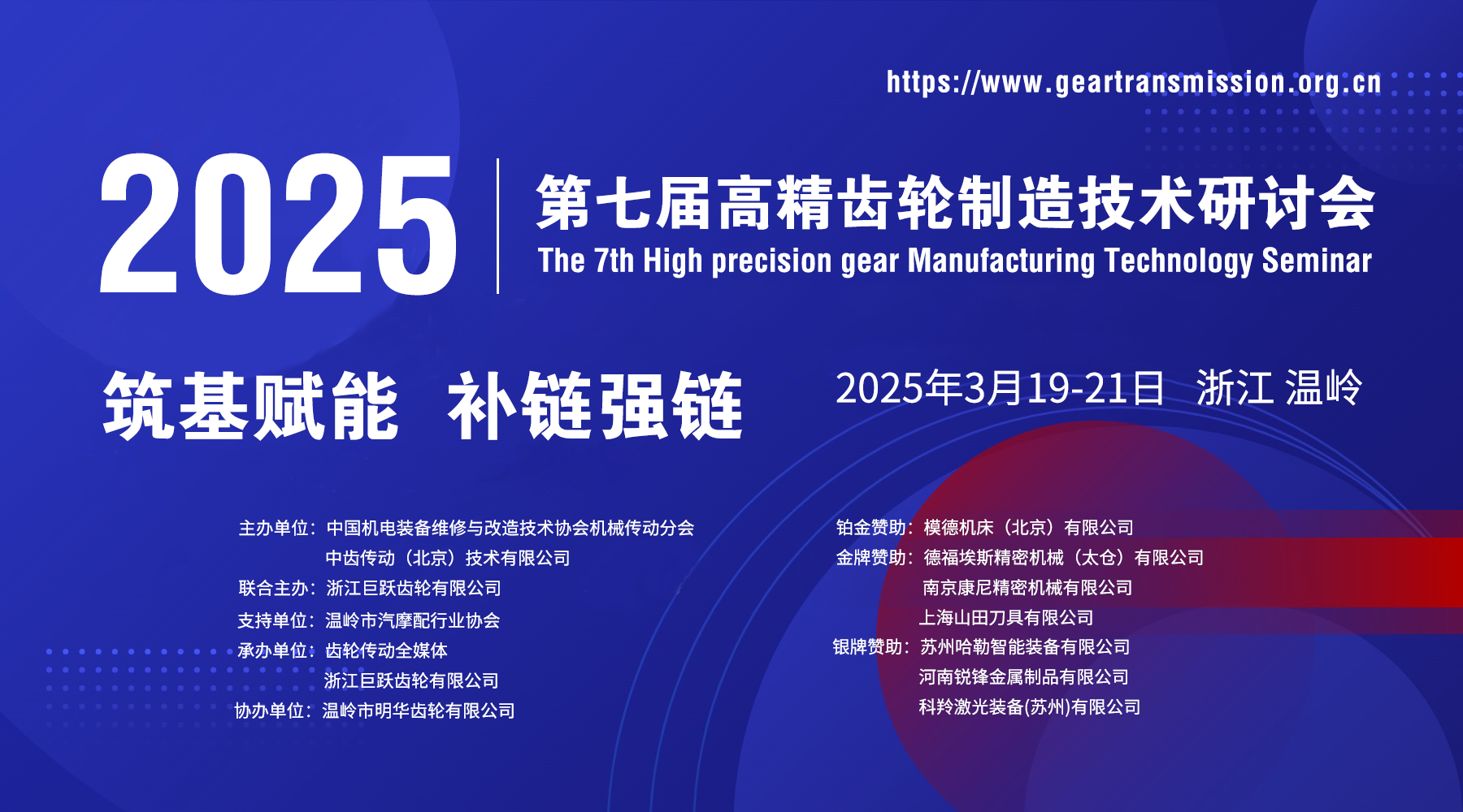由中國機電裝備維修與改造技術協會機械傳動分會、中齒傳動(北京)技術有限公司主辦,浙江巨躍齒輪有限公司聯合主辦的“第七屆高精齒輪制造技術研討會”將于2025年3月19-21日在浙江溫嶺召開。