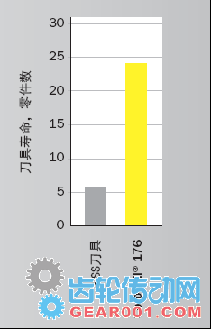 與HSS刀具相比,CoroMill176在更高的切削參數下能夠在額定的加工時間內生產更多的齒輪。
