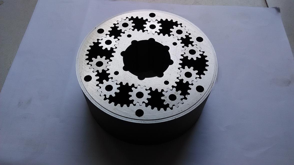 該齒輪為四六式非圓行星齒輪,即太陽輪為四方形,內齒齒圈為六方形,行星齒輪的運動為變中心距運動。該齒輪多用于手持式乳化液鉆機或液壓馬達系統等。