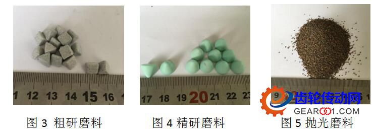 首先將齒輪放入裝有陶瓷磨料DBS6/6見圖3所示的缸桶內(nèi),進行最初的粗研磨,使齒輪表面的粗糙度降低到Ra0.08-0.1um左右。