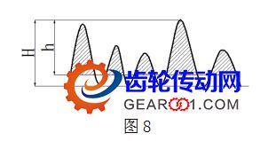 行星輪系傳動齒輪磨齒之后的表面從微觀的角度分析觀察,其表面仍由圖8 所示的波峰和波谷組成,通過齒表面的研磨和拋光可以消除尺寸為h的波峰,減小波峰和波谷的高度差。Δ=H-h從而使齒輪副在嚙合中,接觸的表面積增大,使齒輪的承載能力得到提高,更進一步有利于齒輪在承載中實現(xiàn)均載,有效的提高了齒輪的使用壽命。