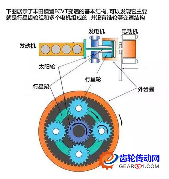 另外,ECVT這類特殊的變速器也采用行星齒輪組作為核心之一,它們沒有變矩器、錐輪,行星齒輪組就是唯一的變速機構了。