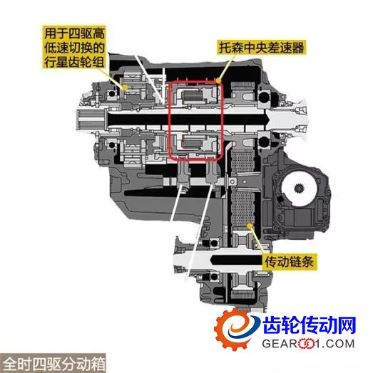由于可以傳遞動力,同時允許行星齒輪和太陽輪自由運動,所以行星齒輪組的輸入和輸出部分可以存在轉速差,這樣用在差速器,尤其是全時四驅車型的中央差速器上也非常合適,只不過由于行星齒輪組加工精度要求高,成本較高,一般都出現在豪華品牌車型上(其余的機械全時四驅更多使用冠狀/傘狀齒輪組)。